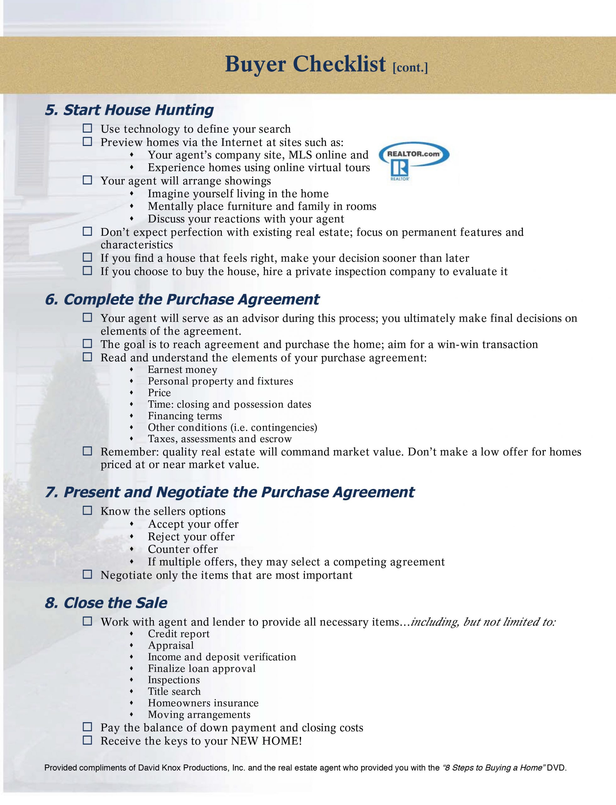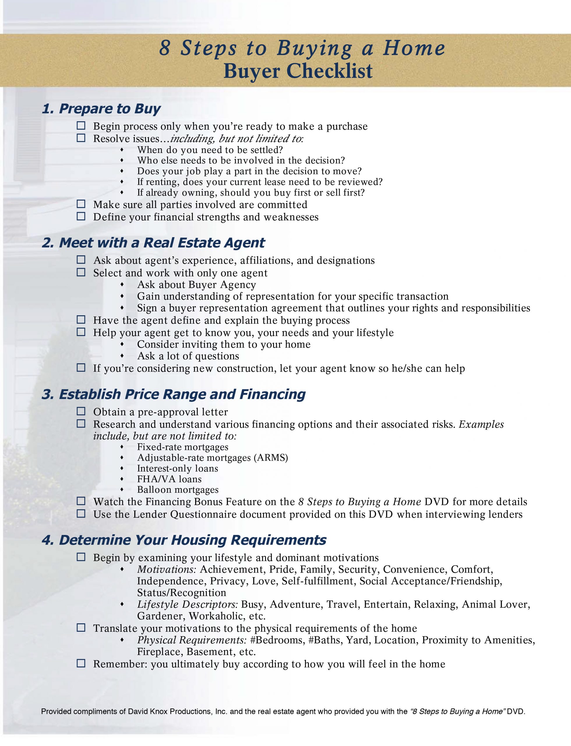 8 steps to buying a home checklist in PDF form